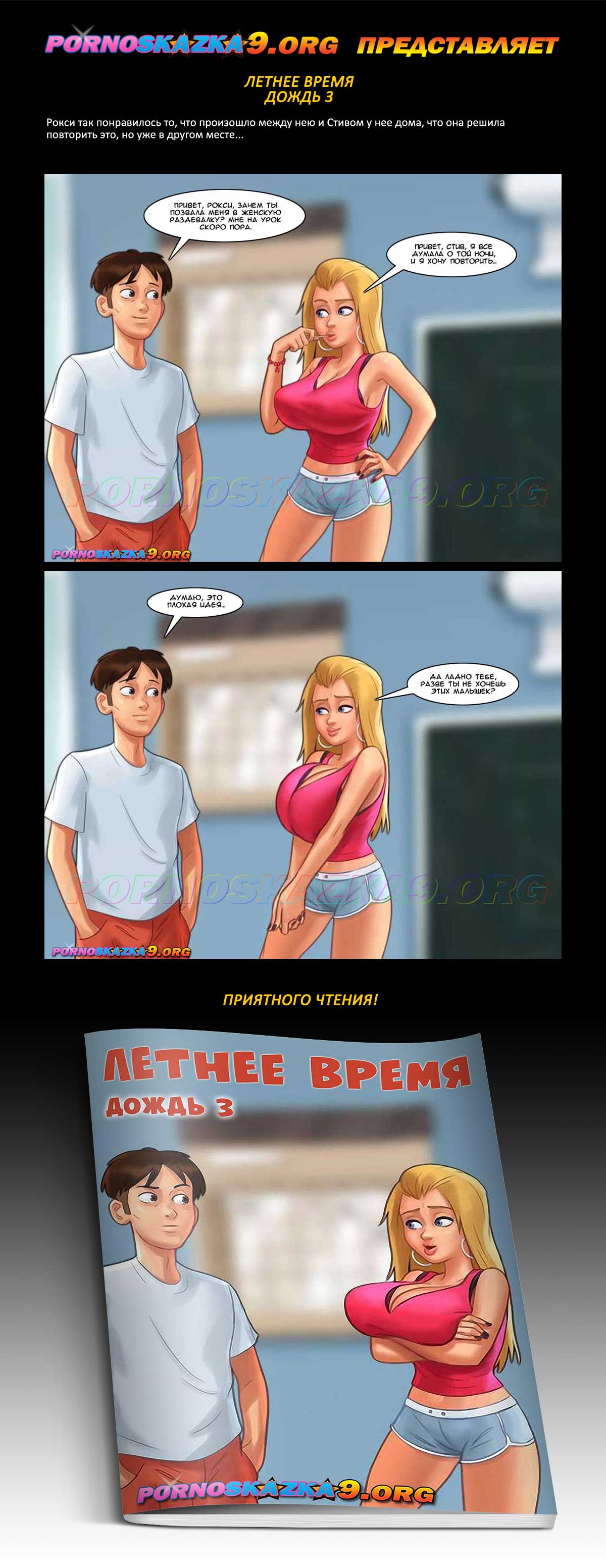 Порно комикс «Летнее время. Дождь 3.» Рокси так понравилось то, что произошло между нею и Стивом у нее дома, что она решила повторить это, но уже в другом месте…